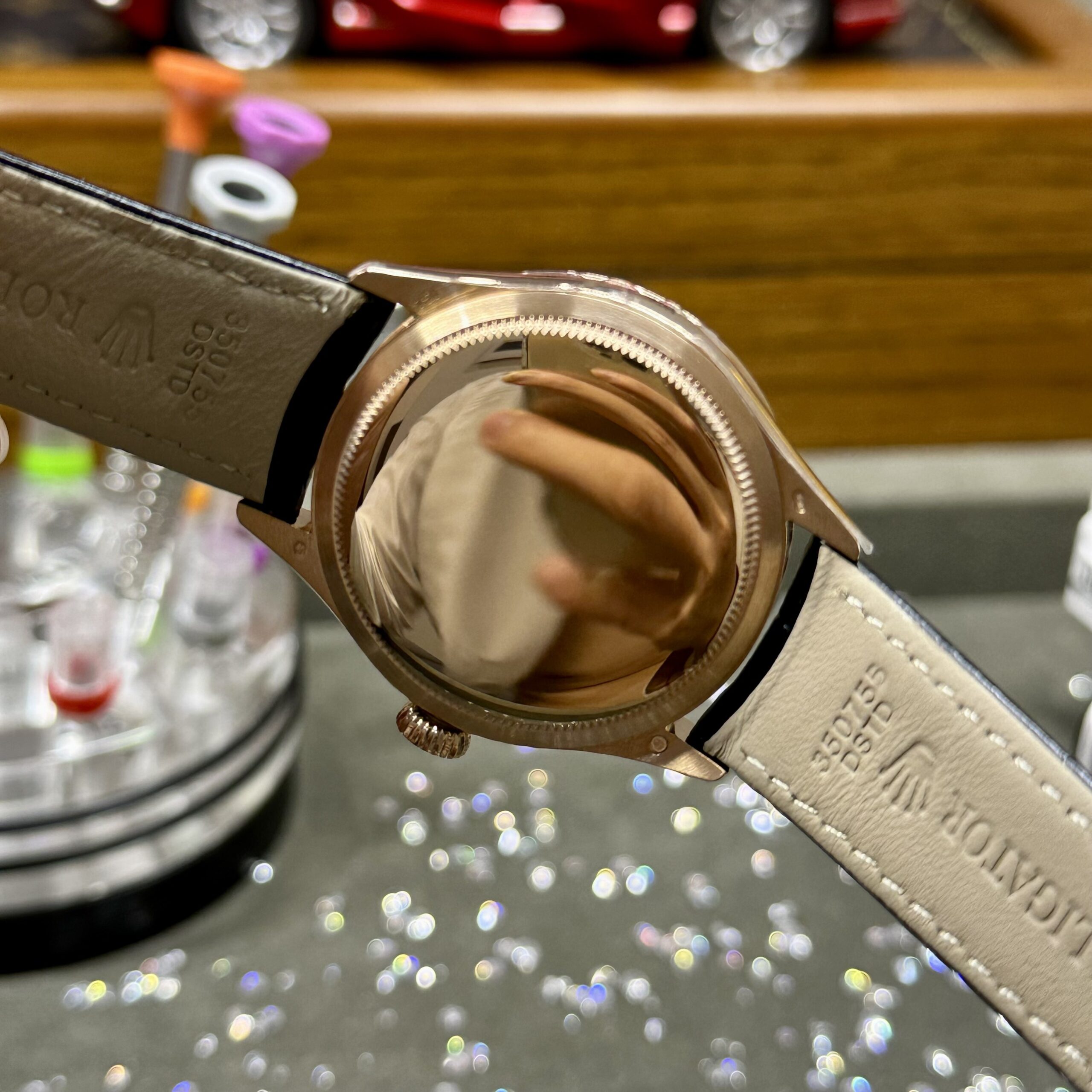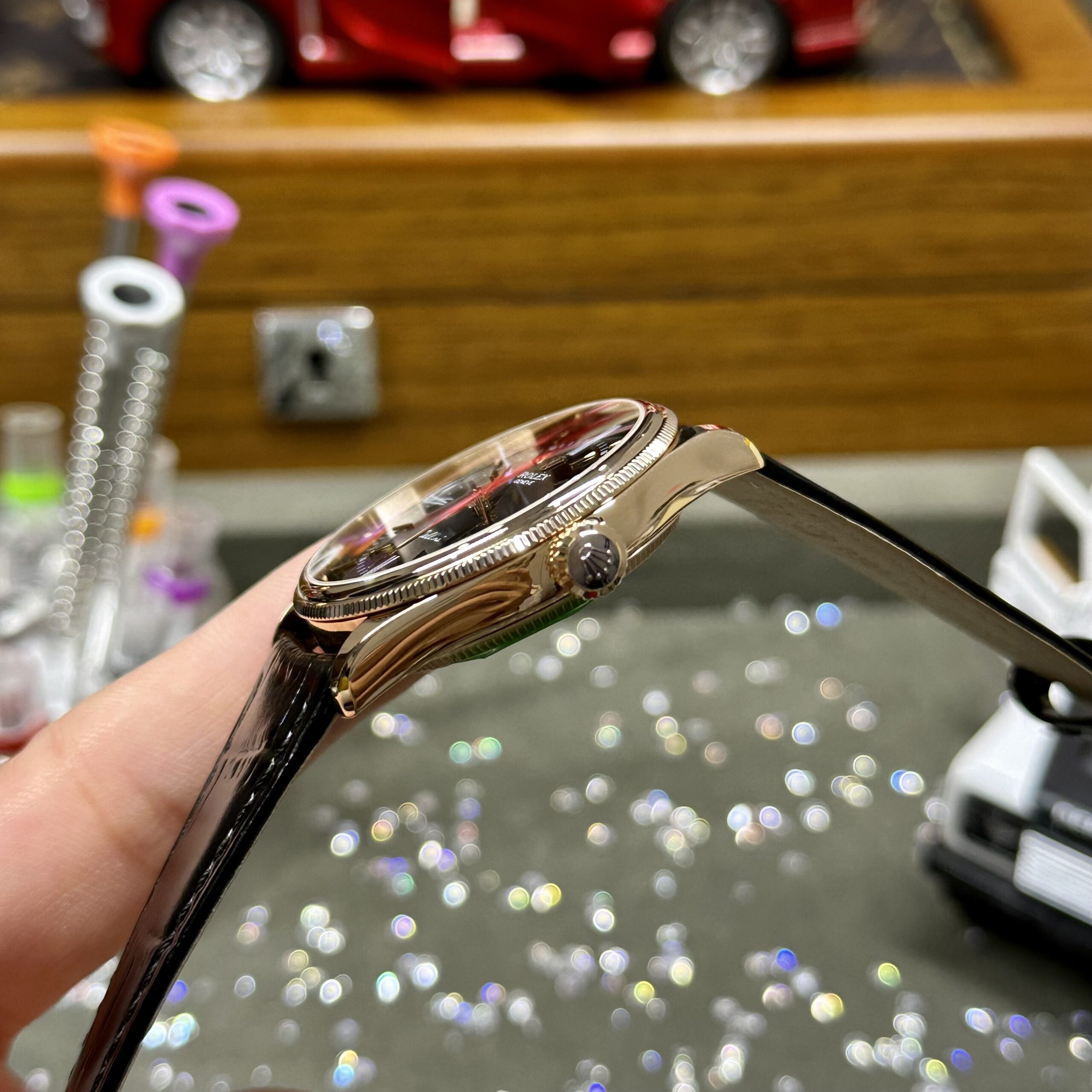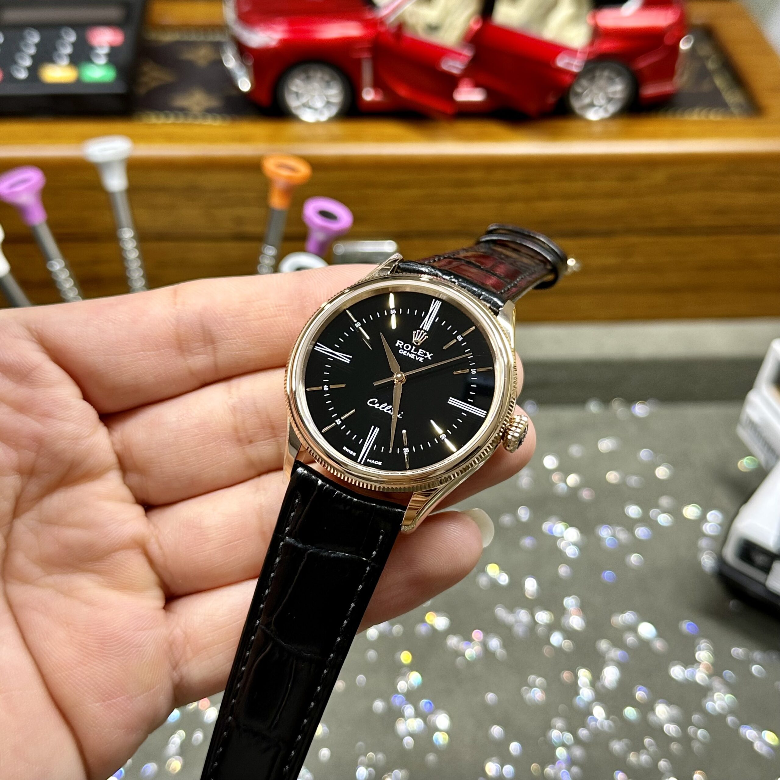 Rolex Cellini 50505 RG Plated Black Dial 39mm Leather AAA Replica