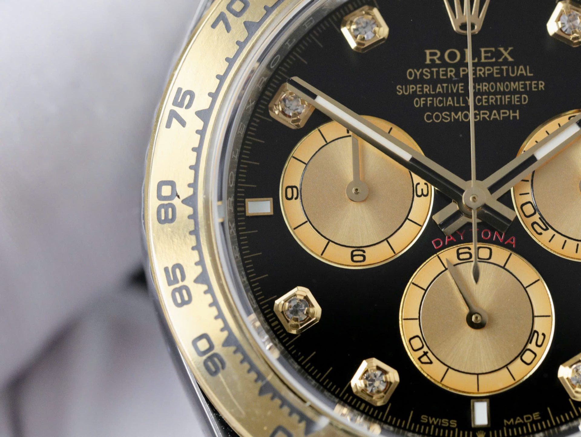 Rolex Daytona 126503 SS/YG Plated Black Dial CZ Diamonds 40mm Oyster Super Clone